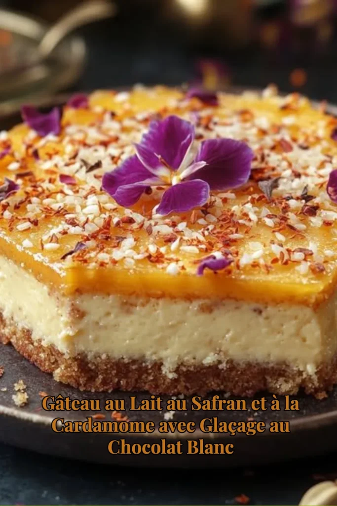 Gâteau au Lait au Safran et à la Cardamome avec Glaçage au Chocolat Blanc