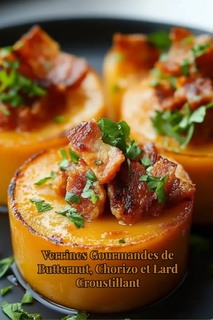Verrines Gourmandes de Butternut, Chorizo et Lard Croustillant