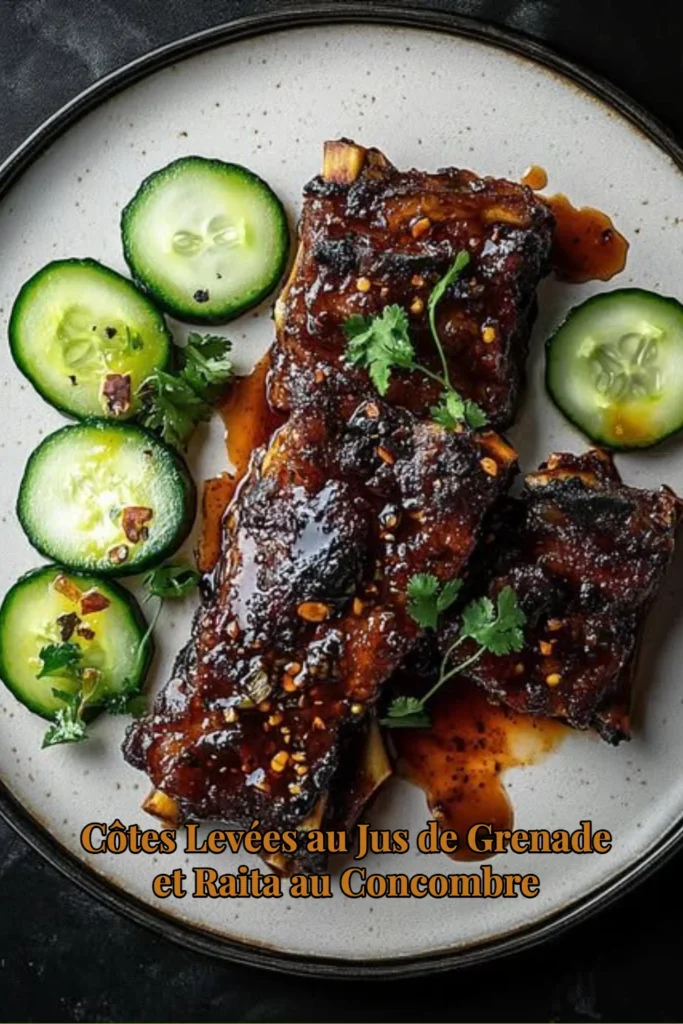 Titre : Côtes Levées au Jus de Grenade et Raita au Concombre : Un Repas Festif pour Vous et Votre Famille !