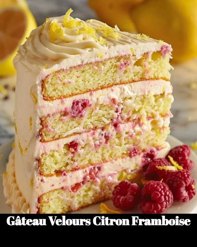 Gâteau Velours Citron Framboise : un dessert éclatant et délicieux. Parfait pour impressionner vos amis ou vous faire plaisir. À essayer absolument !