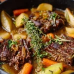 Il y a des recettes qui sentent la maison, qui vous accueillent comme une grosse couverture chaude. Joues de bœuf au cidre est exactement ce type de plat : riche, tendre, avec une sauce qui fait fermer les yeux de plaisir. Si vous êtes une maman pressée, une professionnelle occupée ou simplement quelqu’un qui veut impressionner sans stress, cette recette est pour vous. Et si vous cherchez un accompagnement qui change, pensez aux délicieuses pommes de terre rôties créoles — elles s’accordent à merveille.