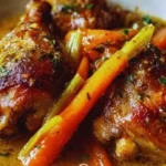 Le lapin braisé lentement à la moutarde a tout : une viande délicate qui fond presque, une sauce onctueuse, et un parfum qui remplit la maison comme une étreinte chaude. C’est la recette de lapin idéale pour impressionner sans stresser — parfait pour un dîner du dimanche ou pour transformer une semaine ordinaire en moment spécial.