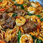 Sauté de nouilles Surf & Turf : voilà une idée qui sonne comme une petite fête dans votre assiette, surtout après une journée de mille choses à gérer. Si vous aimez la combinaison gourmande de fruits de mer et de viande, mais que vous n’avez pas trois heures à consacrer au dîner, cette recette est pour vous. Facile, savoureuse et prête en moins de 30 minutes, elle va rapidement devenir un classique de la semaine.